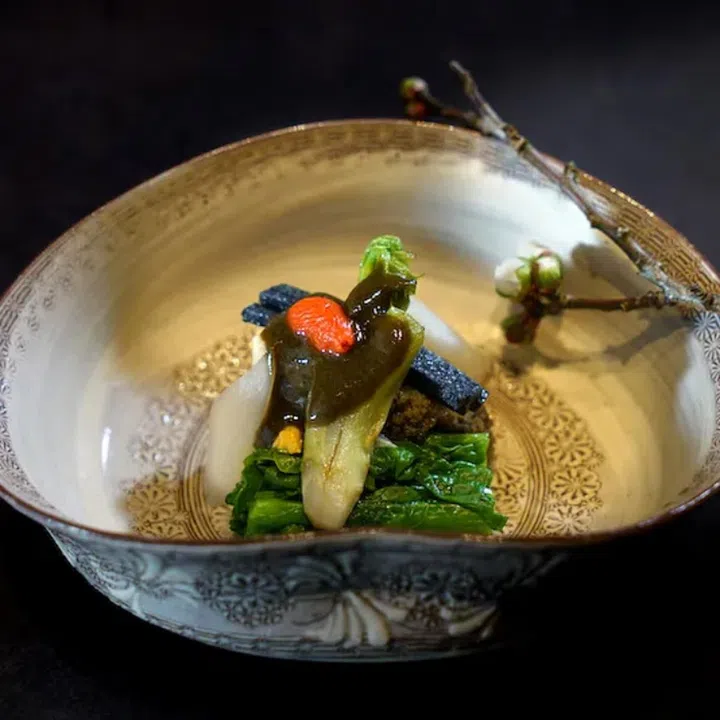 His ‘Philosophy of Five’ is based on the ancient Japanese culinary principle of ‘Gomi, Goshiki, Gohou’ (five flavours, five colours and five cooking methods). Everything is harmonious just like a symphony. The dining experience here is meant to engage all five senses.