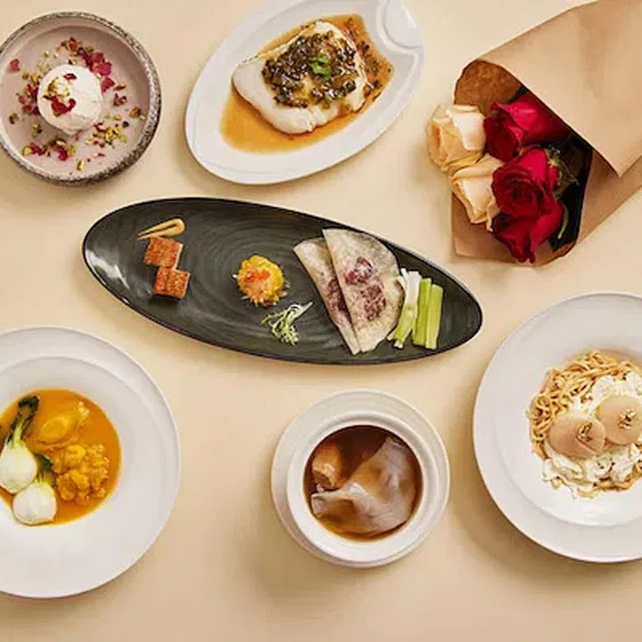 Take a trip down memory lane with a six-course dinner ($276++ per couple) of comforting Cantonese dishes such as double-boiled chicken soup served with fish maw and maca and the braised ee fu noodles cooked with scallops, egg white and gold flakes .
