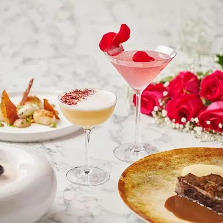 An intimate five-course dinner ($268++ per person) is specially curated to be shared. Tuck into dishes such as pan seared scallops and turbot bathed in caviar beurre blanc. Conclude the meal on a sweet note with coconut strawberry petit gateaux cream. Available on 14 February.