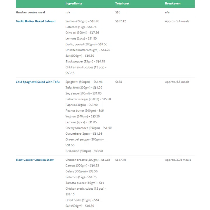 Here’s how a home-cooked lunch stacks up against a typical hawker centre meal, cost-wise.