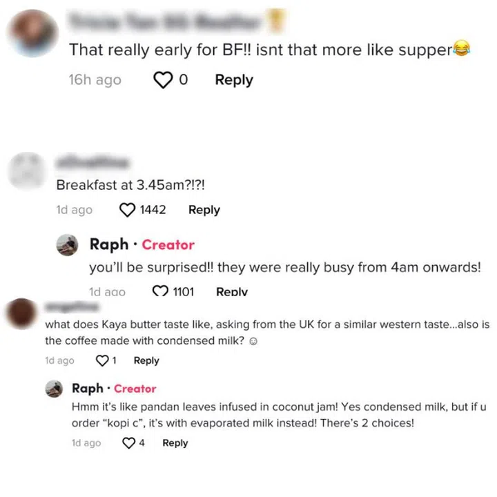While some locals left comments about how they'd never make the coffee stall's opening hours, netizens from overseas were intrigued by the video and more specifically our choice of breakfast in Singapore.