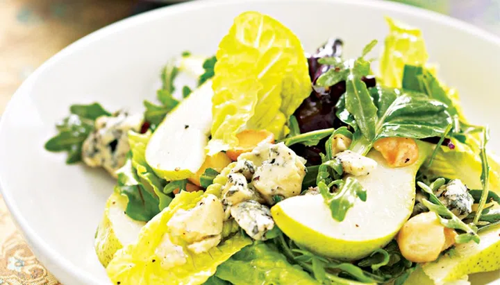 Putting together this gorgeous blue cheese, pear and macadamia salad is almost effortless with this easy recipe.