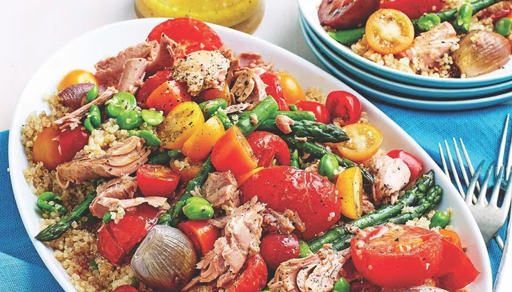 When people think of salads, they think of an overload of bland veggies and a general feeling of being unsatisfied after eating it. But salads don't have to be tasteless and boring. Try our roasted tomato and quinoa salad and fall in love with your greens again.
