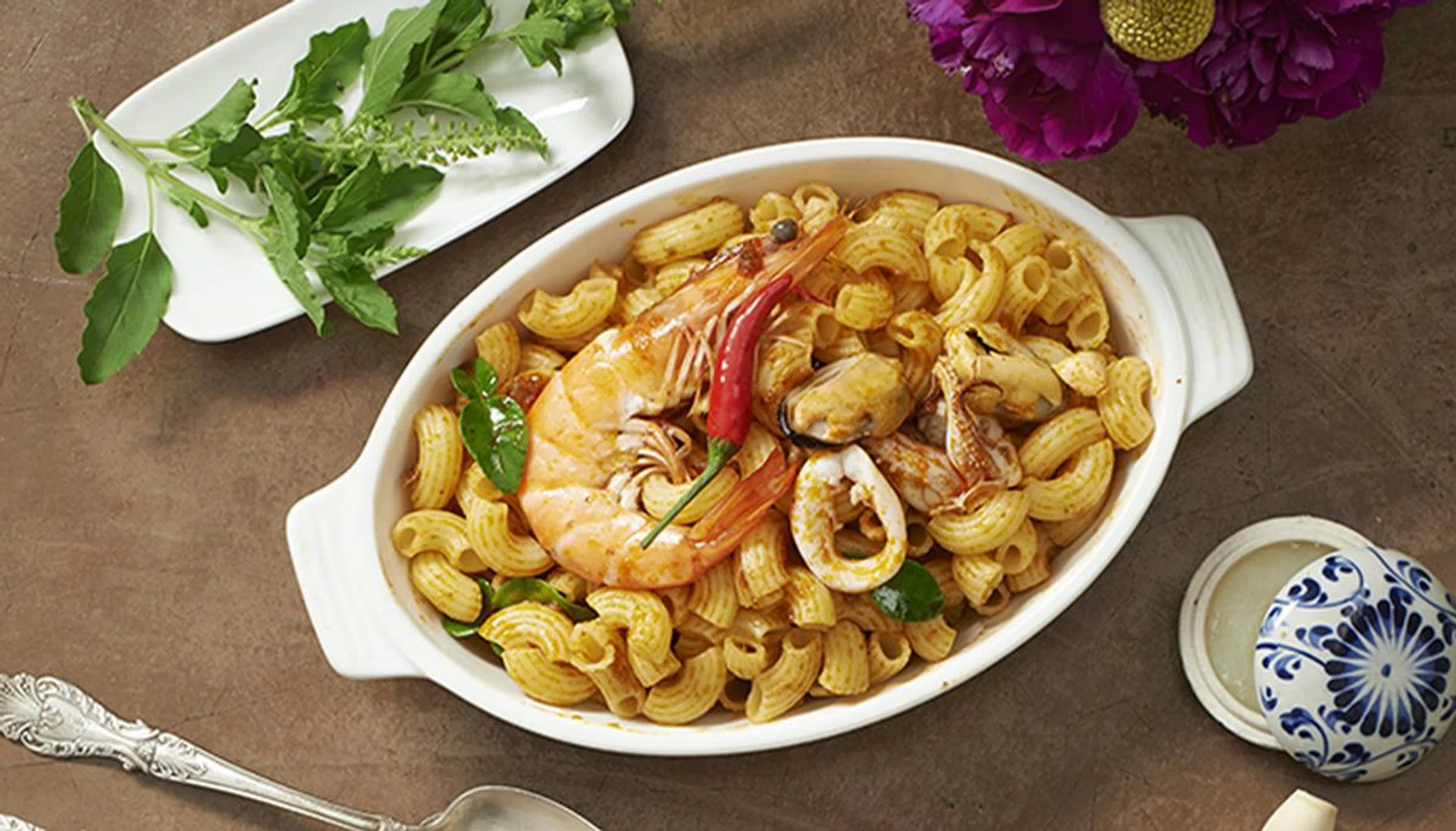 Accompanied with fresh seafood, these Thai tom yam flavours give this elbow macaroni dish the perfect amount of zest and spice.