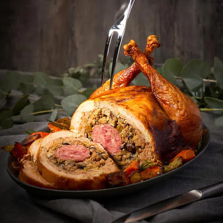 The Stuffed & Deboned Roast Turkey ($358, approximately 4kg) serves a party of 10 to 12 persons.