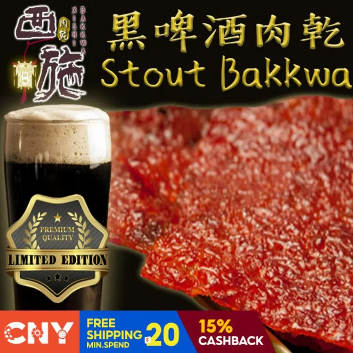 Xi Shi Bak Kwa's concoction is hand-made with premium-grade Brazilian pork slices marinated in high-quality stout then charcoal-barbequed. Great as a gift for stout-loving friends and family.