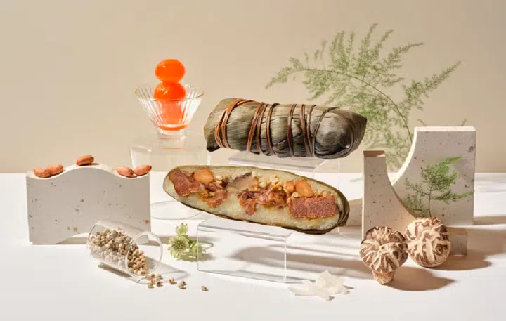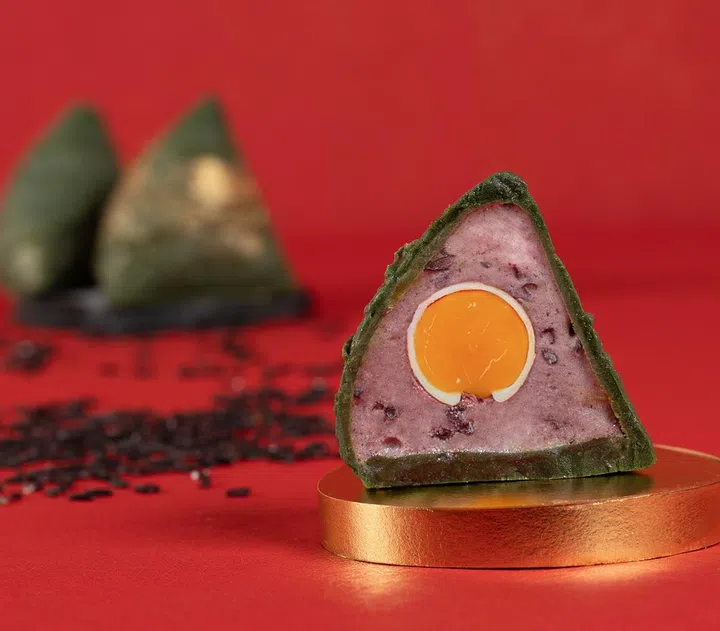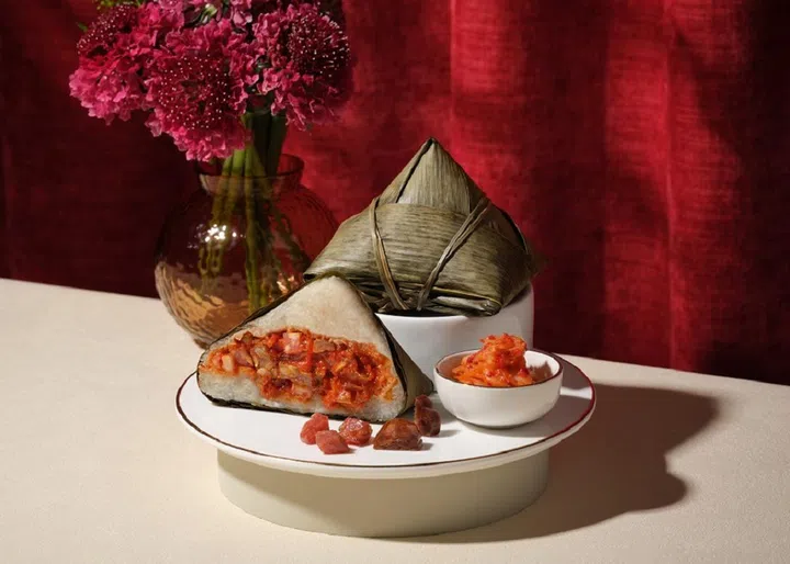 Add a kick to your celebrations with the Pork Trotter & Peanut with Szechuan Green Peppercorn Rice Dumpling ($25) from Wan Hao Chinese Restaurant at Singapore Marriott Tang Plaza Hotel. This fragrant dumpling starts with slow-braising pork trotter in Chinese herbs for 90 minutes to soak up all that flavour, followed by an overnight marinade in green peppercorn sauce to give it a numbing, fiery punch. After poaching for three to four hours, the result is a bold blend of tender pork, peanuts, black fungus, and fragrant glutinous rice.