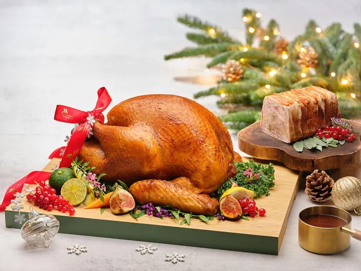 For a halal option, head to M Hotel Singapore and get the Winter Truffle Turkey with Parmigiano ($148+ for 4kg, good for six to eight persons). As the name suggests, the turkey is served with truffle champignon cream sauce and topped with a snowing of Parmigiano cheese. You will also get seasonal vegetables and potato sides.