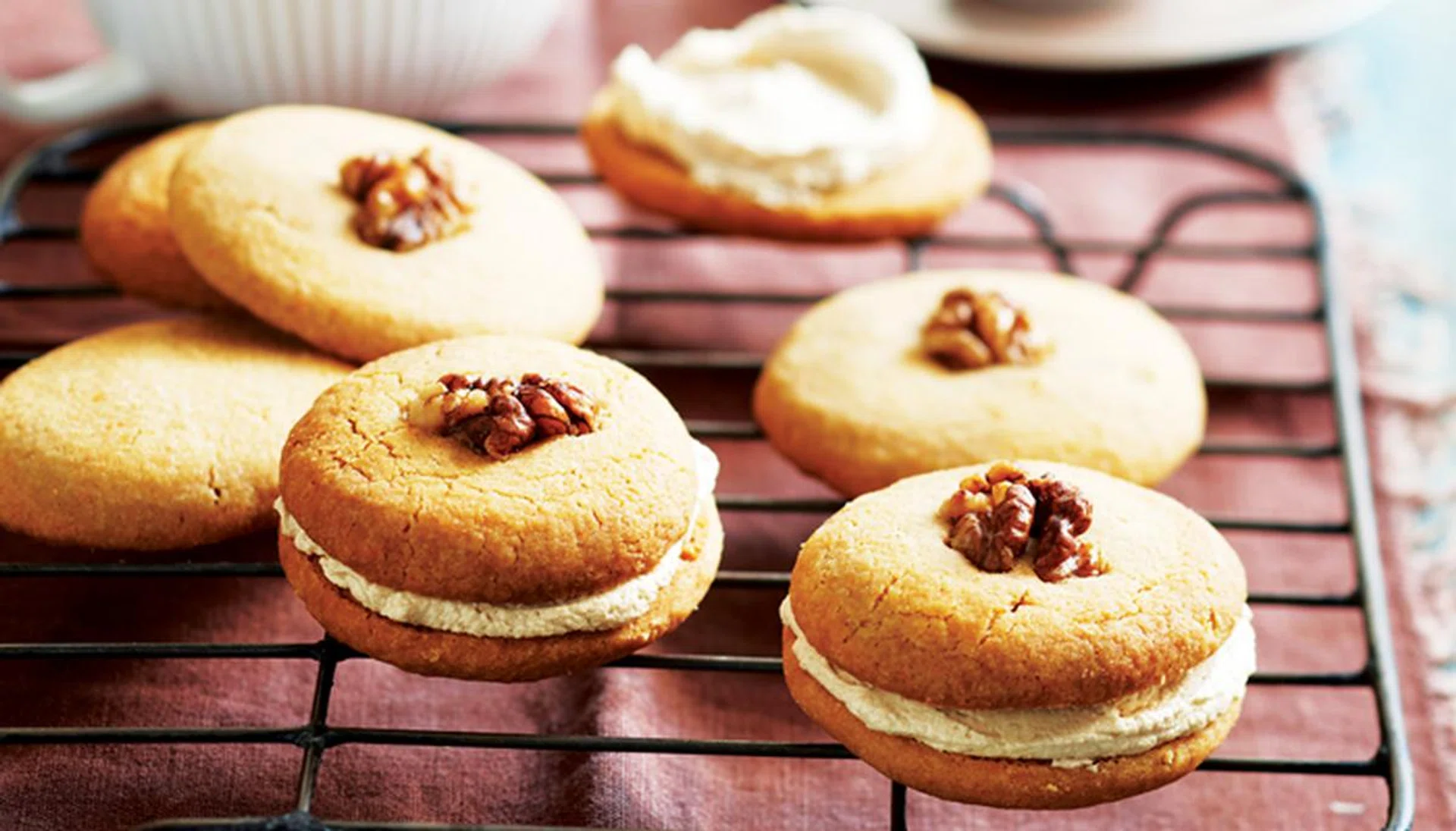 If you love coffee, you'll enjoy these scrumptious Walnut Coffee Creams. The coffee-infused filling works wonderfully with the dreamy custard biscuits.
