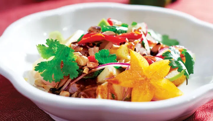 There is an absolute freshness and vibrancy to this salad that makes it delicious by itself, or with cooked prawns, cooked chicken or steamed fish fillets.