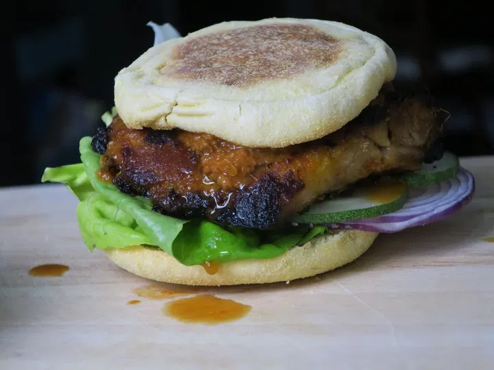 We’re going to use the sauces to make an easy chicken satay sandwich with English muffins because English muffins are great when toasted, and they’re a perfect reason for having satay for breakfast.