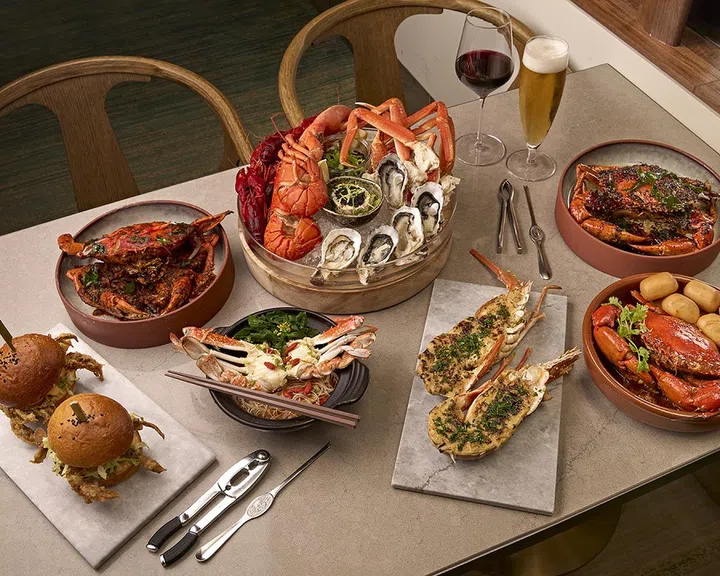 Think fresh Maine lobster and snow crab legs on ice, crab rillette, lobster thermidor, crab and lobster bisque and steamed flower crab noodles, and Kam Heong crab. And with National Day just on the horizon, you can expect local favourites like chilli crab and black pepper crab, too.