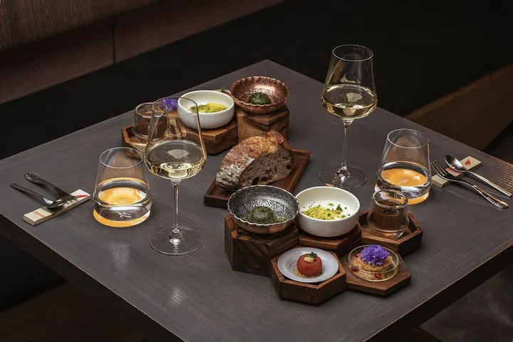 Savour an eight-course meal with the Signatures Tasting Menu that starts with an amuse bouche, and introduces a repertoire of iconic Singaporean flavours. Otherwise, take your pick of small plates from the Signatures Ala Carte Menu, with classic and well-loved options. Highlights include the Chilli Mud Crab Pincer, Sliced Luffa Melon in Collagen Soup that's boiled for hours, and a luxurious handmade Truffle Prawn Ball — this has pan-fried foie gras wrapped in prawn paste, white truffle oil and chopped black truffle.