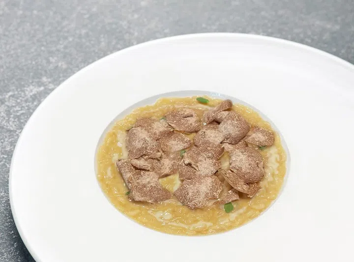 The aromatic and earthy flavour of white truffle lends itself to plates like White Truffle Egg Soufflé with Saffron and Parmesan Cheese Sauce, the crowd-favourite Tagliolini with Butter Emulsion, Parmesan Cheese and White Truffle, and even dessert, which sees a layered dessert of mushroom meringue, vanilla and chestnut cream, marron glacé, hazelnuts, and hazelnut ice cream with white truffle shaved over.