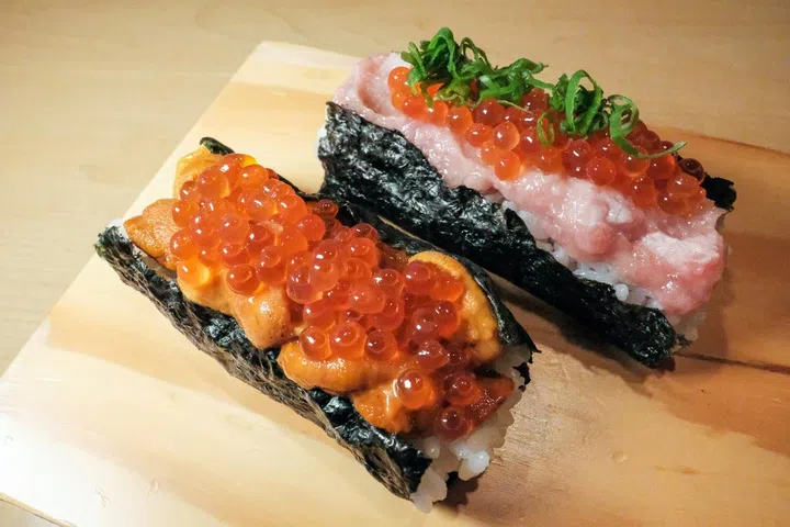 Amazing Hokkaido in Robertson Quay has rolled out a cheeky hybrid of a hotdog and sushi, or what they bill the 'Sushi Dog'. The sushi dogs comprise short-grain sushi rice, crisp seaweed; enjoy your with fresh toppings of either creamy bafun uni (sea urchin, $29.90) or negitoro (fatty tuna, $24.40), then finished off with a generous dollop of salmon roe.