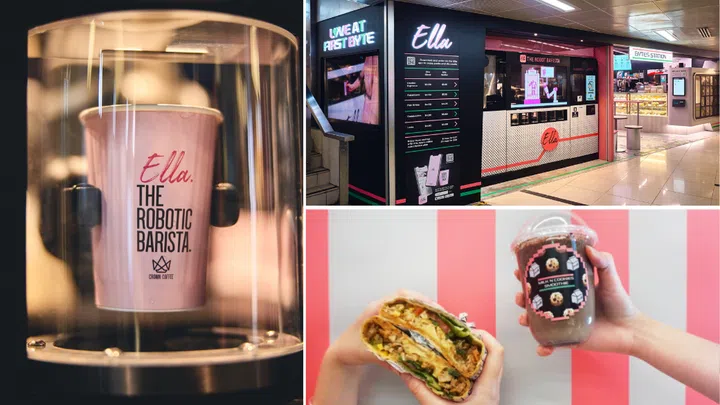 By now, you'd likely have seen Ella the AI-powered robot barista at Plaza Singapura's atrium. And now, you can catch the six-axis robot arm in action at Raffles Place MRT station, where it's part of the new Bytes Station, a grab-and-go sandwich and smoothie kiosk by Crown Coffee.