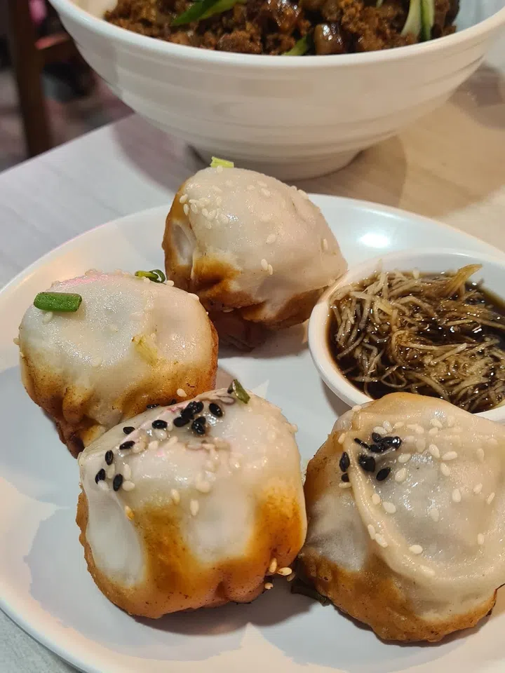 Located along Kovan is this cosy but rather trendy-looking establishment with illustrations on the walls and neon lights. Here, sheng jian bao's the star of the menu.