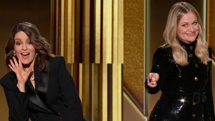 Comedians Tina Fey and Amy Poehler – hosting from opposite coasts – opened the ceremony via split-screen while pretending to reach across to one another, before an opening routine that made fun of the Globes-awarding group of obscure foreign reporters, which has been under pressure for its lack of diversity.