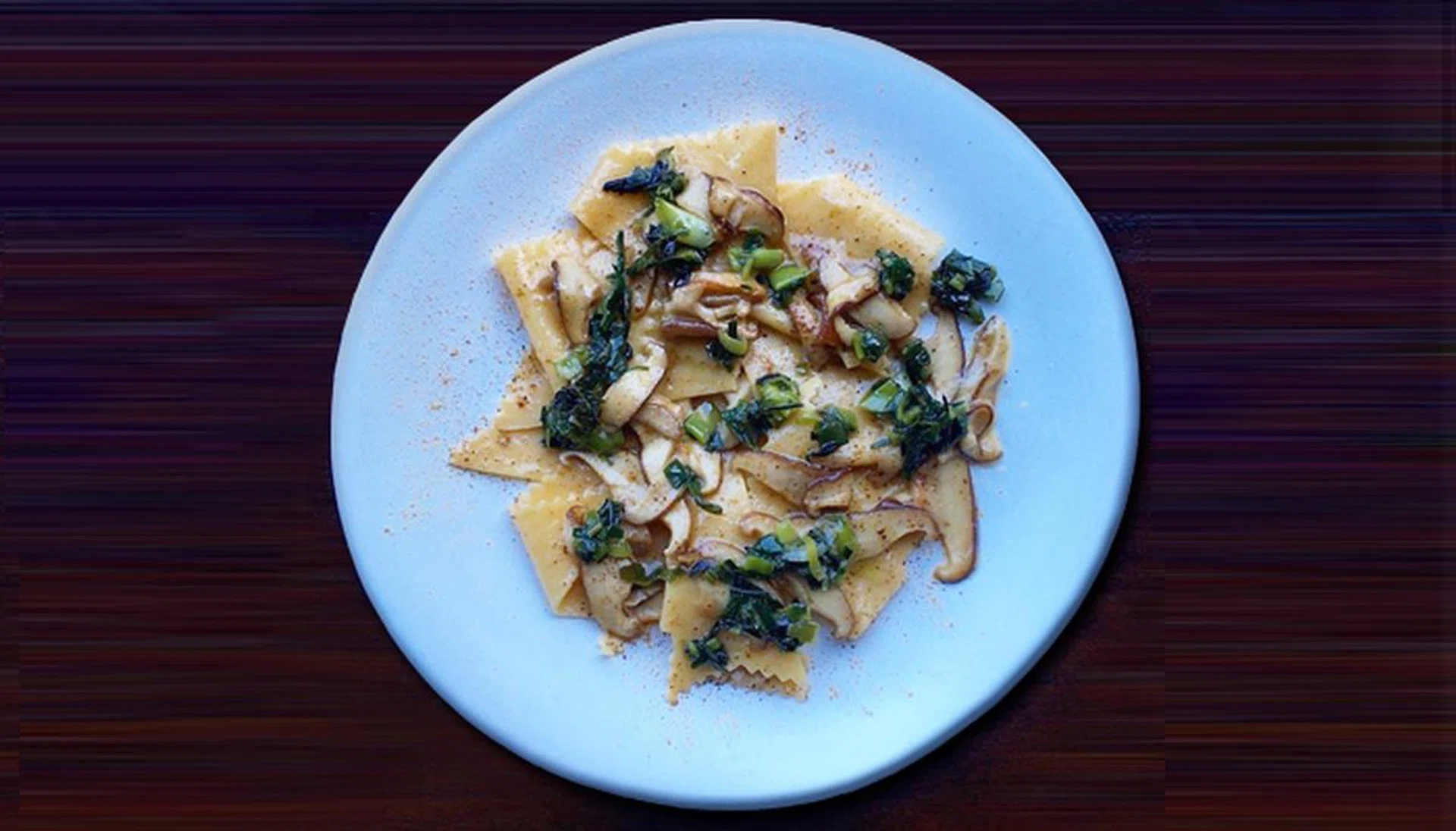 05. Plate the pasta and dress with the burnt scallion dressing. Serve immediately.
