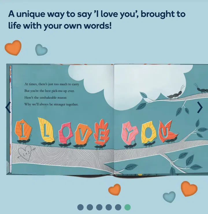 Give your partner a personalised love book with your words for them printed on the pages and adorable illustrations to go with it. To create the book, you will have to answer 10 questions that allow up to 100 characters max. Some of the questions include 'When I'm sad, you make me feel better because...' and 'When we get old, the best thing we'll do together is...'.