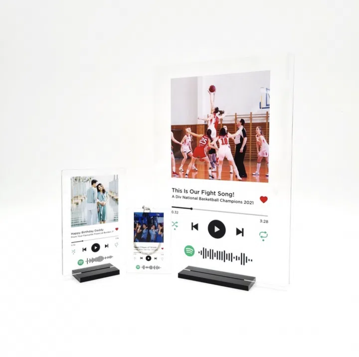 Do you and your partner have a song that represents your relationship? If you do, get a personalised acrylic plaque so that she can always carry it with her. Send in your favourite square image of the both of you, the name of your song, the 'singer' (you can put anything you like, be it a quote or both your names), and the URL link of the song if you would like a scannable code.