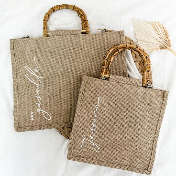 Customisable with the teacher’s initials, this chic bag is made out of durable jute fabric and features a bamboo handle for a casual but sophisticated look.