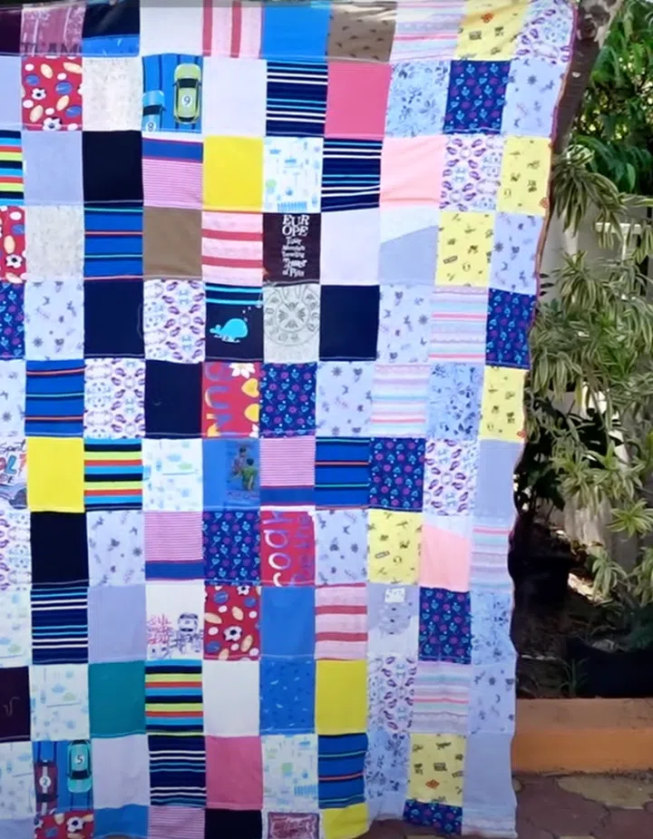 Memory quilts are a great idea for preserving your baby’s old threads and still getting something practical and fun to look at out of it. Start by gathering up all your old kidswear – the more colourful, the better – and snip square patches out of them. Then it’s a simple task of stitching them all together in a design that pleases you.