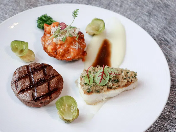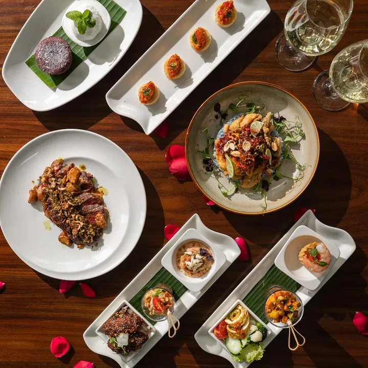 You'll find tempting dishes on its choice of two menus, like a trio of Cha-om eggs roll, deep-fried Thai fish cake and kueh pie tee. Move on to grilled New Zealand ribeye topped with Asian green chimicurri or a whole lemongrass fish fillet with spicy Thai sauce before ending the night on a sweet note with the lava cake with coconut ice cream, or chocolate and strawberry ice cream.
