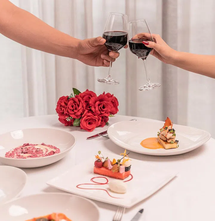 For contemporary European dining, Tablescape Restaurant & Bar offers a romantic Valentine's Day degustation menu. Dishes include a classic French black cod brandade with lemon and squid ink polenta, poached whole lobster with foie gras and caviar, and a 12-hour slow cooked pork belly served with aglio olio. Finally, you'll get a chocolate dessert of zinged up with raspberry and jasmine.