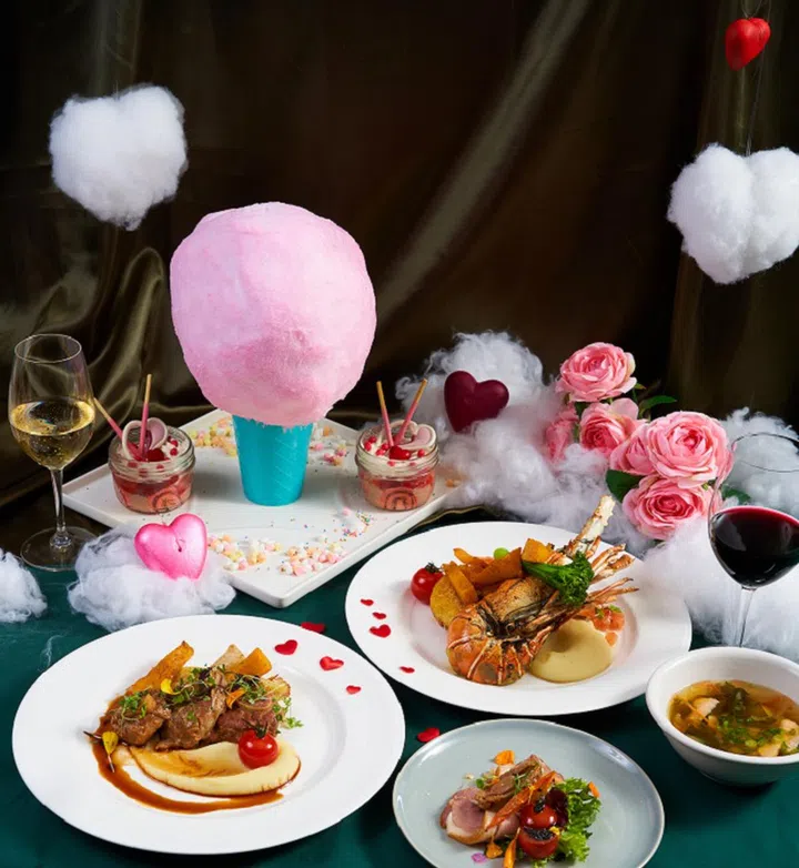 Each carefully curated menu, conceptualised by executive chef Kenny Yeo, will have lovebirds looking forward to the likes of Slow Braised Oxtails in Beaujolais wine reduction, Rack of Karoo Lamb and Gruyere Au-gratin Lobster. A live cotton candy stand and a mountain of the fluffy treat will be served to diners at both Arbora and Dusk in addition to their dessert.