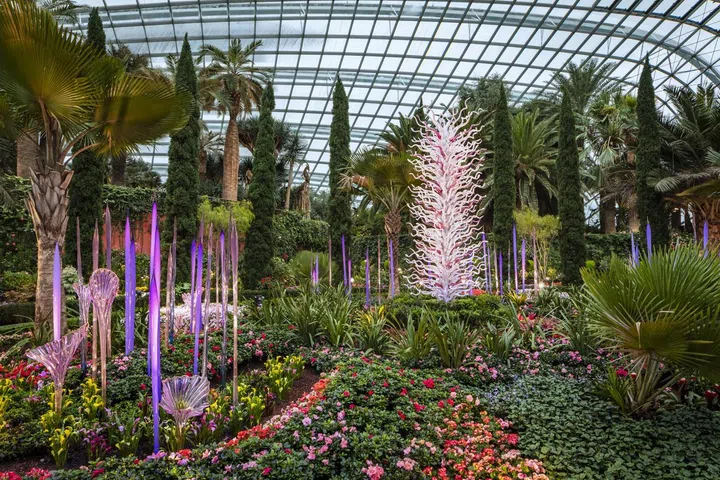 World-renowned glass artist Dale Chihuly’s breathtaking glass sculptures set within and complemented by the beautiful surroundings of the gardens will help you experience nature in a new light. A hundred of Chihuly’s famed pieces, including 10 large-scale glass sculptures, are interspersed at different locations within the gardens, including the famed Flower Dome and Cloud Forest, so there’s something to be enthralled by at every turn.