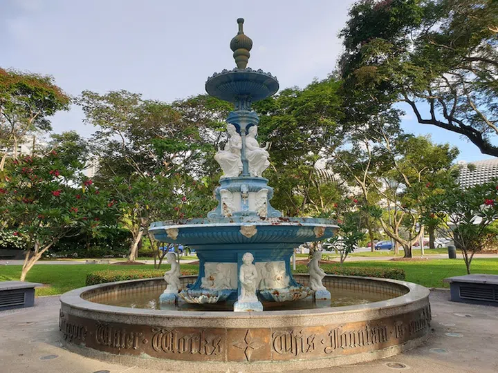The Tan Kim Seng Fountain, bulging with Victorian cherubs, commemorates pioneer philanthropist Tan’s donation towards the first public waterworks. The Rising Moon by artists Han Sai Por and Kum Chee Kiong is a modern work in granite which reinterprets national symbols like the five stars and crescent moon.
