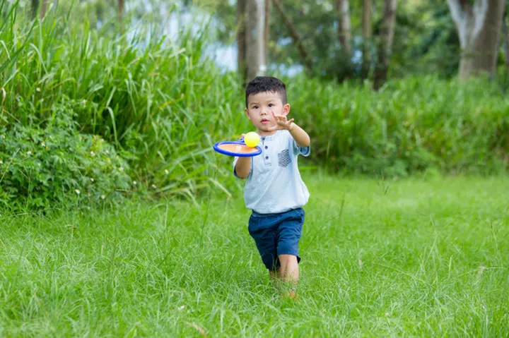 How to play: Have your kid balance a ball on a tray (or a racquet) while he walks behind you. He should “freeze” without dropping the ball when you stop walking.