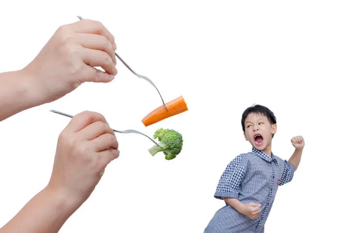 Give them small amounts of food on a large plate. Your young child may be put off by large mounds of food on their plate – it may seem overwhelming to them. Also, get them used to the taste of vegetables by mixing them up with food that you know they like.