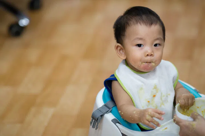 As your little one learns to feed themselves, expect the food to go everywhere – not just into their mouth – because their coordination isn’t fully developed.