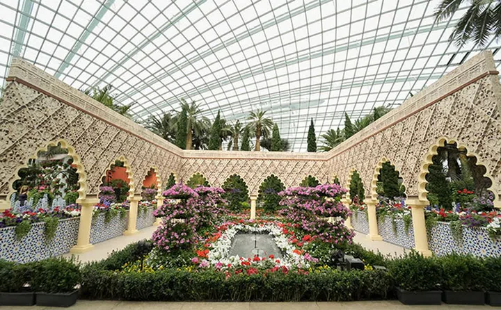 As part of the Flower Dome’s ever changing garden display, the month of October features a floral display with inspiration from the region of Andalusia in southern Spain. Expect pretty Petunias, the ever bright Sunflower and Pelargonium, a genus of flowering plants that excuse accents of rose, lemon and even nutmeg.