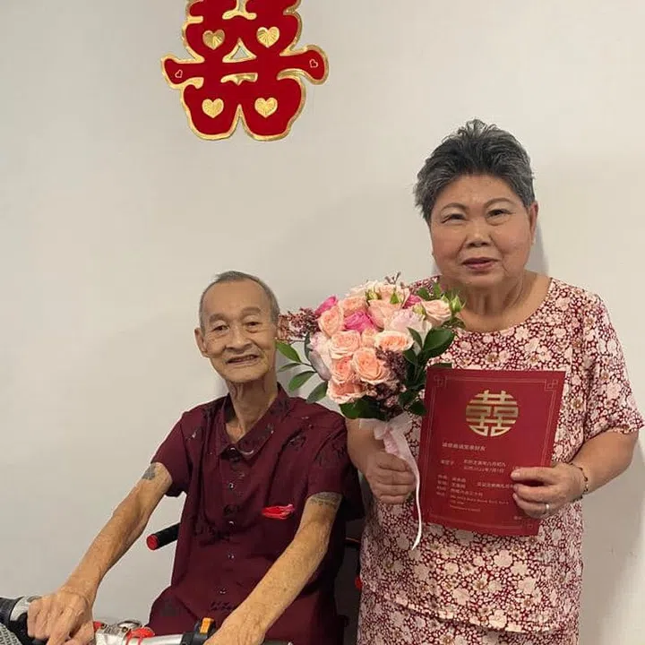 Said volunteer and wedding solemniser Huang Shuomei: "After knowing that Wu had late-stage lung cancer, we acted quickly to help fulfil his wish. Staff at the Registry of Marriages also helped to expedite their request to hold their wedding solemnisation."