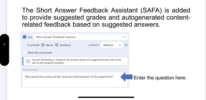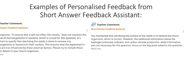 As students put in their answers, the tool matches their responses to her mark scheme and provides immediate feedback, she said, adding that she can refine this feedback to better support the students’ learning.