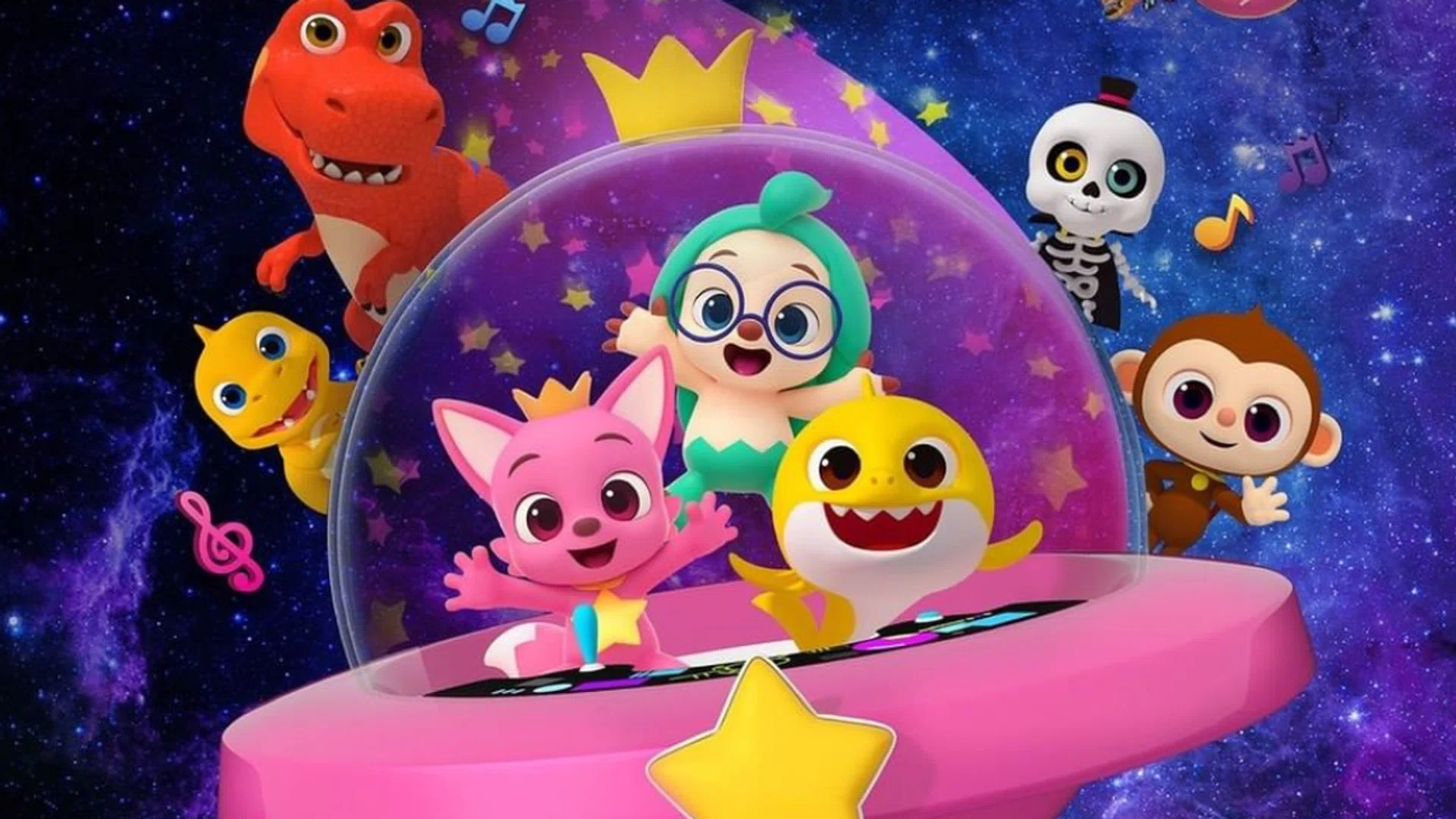 Or take a ride on the Spring Shark Rider, have a thrilling time with Pinkfong and Hogi as they sled down the grass, explore the universe on a spaceship, and more.