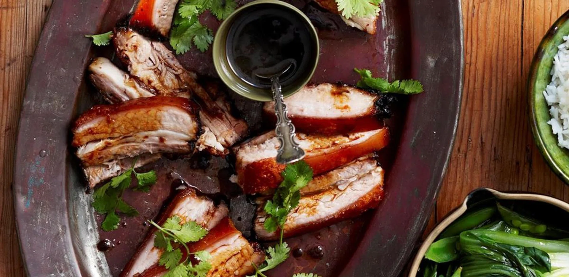 For a hearty main course for dinner, try cooking this traditional Chinese style pork belly dish for the whole family. To make slicing easier during preparation, turn the pork skin side down onto the chopping board.