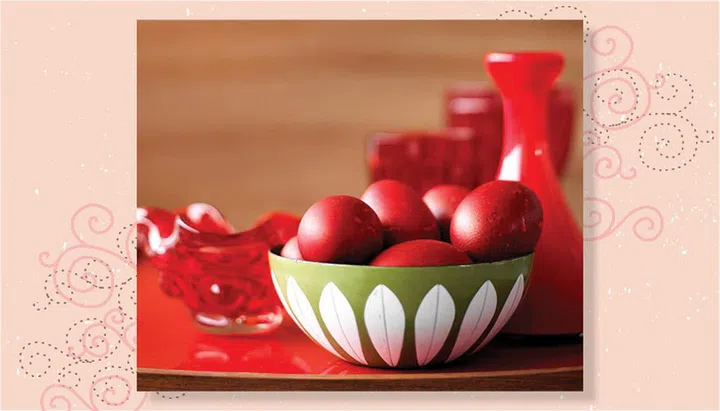 These classic red dyed eggs, known as kokina paschalina avga, are traditionally enjoyed at Greek Orthodox Easter. They make a great Easter surprise!
