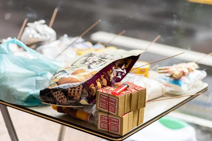 Food, incense, or joss paper placed by the roadside are for the spirits. Disrespecting them could bring misfortune.