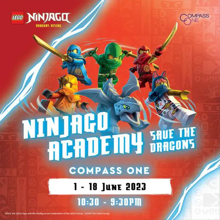 Gear up for an exciting adventure at the LEGO NINJAGO Academy, taking place at the Compass One atrium Young heroes are invited to train with Master Lloyd and new characters Arin, Sora, and Baby Dragon Riyu.
