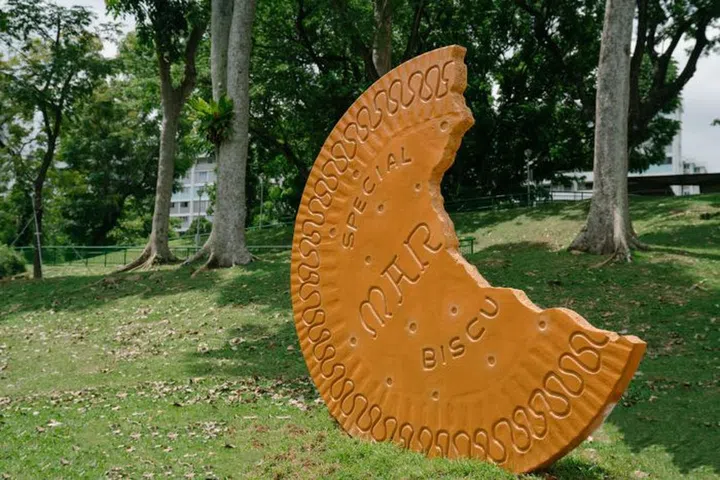 Take a bite out of a giant Marie biscuit, let your voice echo through a huge cup-and-string telephone structure, or have a go at the colourful, whimsical see-saws. Dreamy and nostalgic, these artworks stem from reflections brought about by the pandemic, and reflect the artists’ responses to hope, recovery, and transformation.