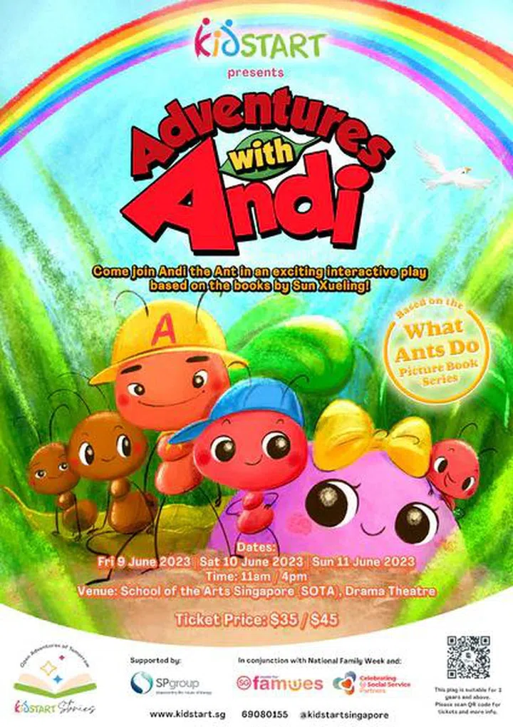Inspired by Minister of State, Ms Sun Xueling's beloved "What Ants Do" book series, this adapted play follows Andi's exciting journey of discovery as he confronts challenges that jeopardise his family and friends. Join Andi on his quest to uncover the true essence of home and friendship.