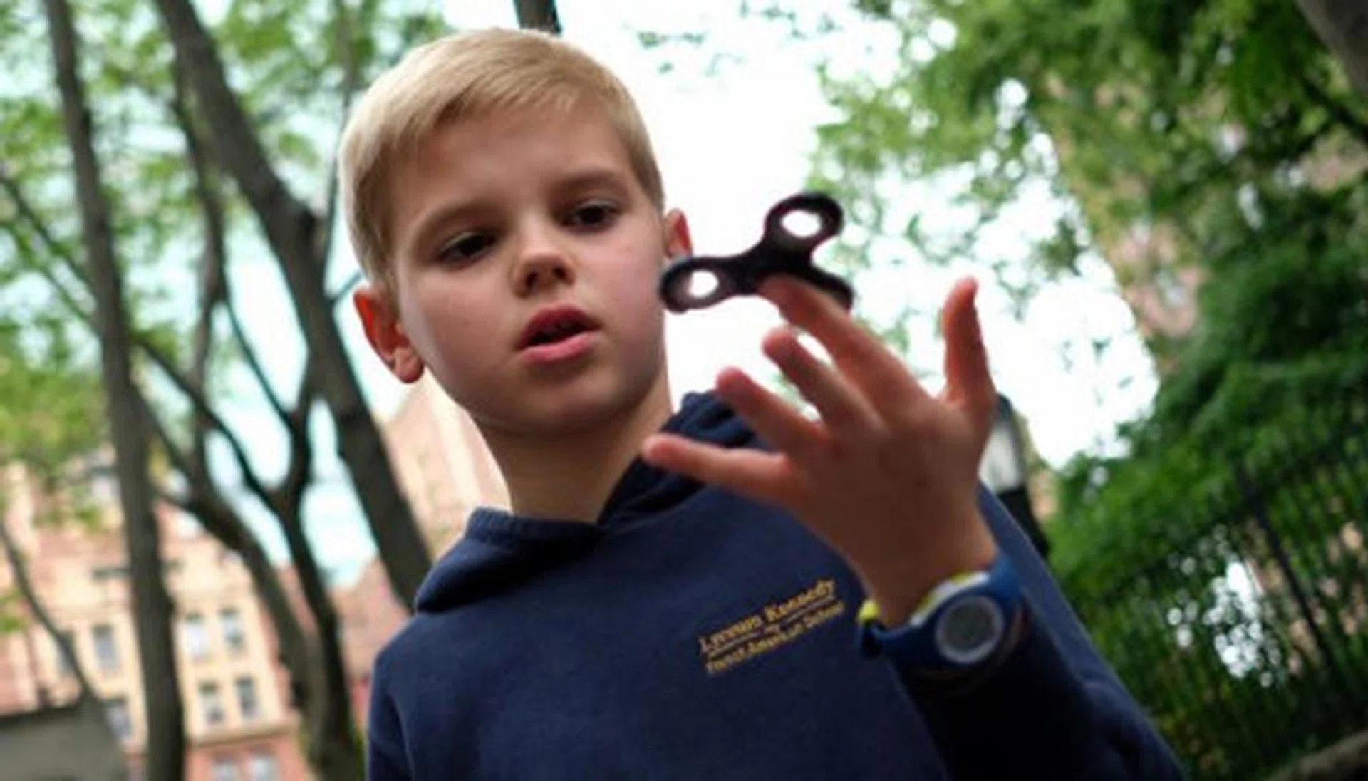 "It would help (to have them in school)... if I don't want to do my work anymore, I take my fidget, do a little spin and then get back to work," the eight-year-old New Yorker originally from Belgium says.