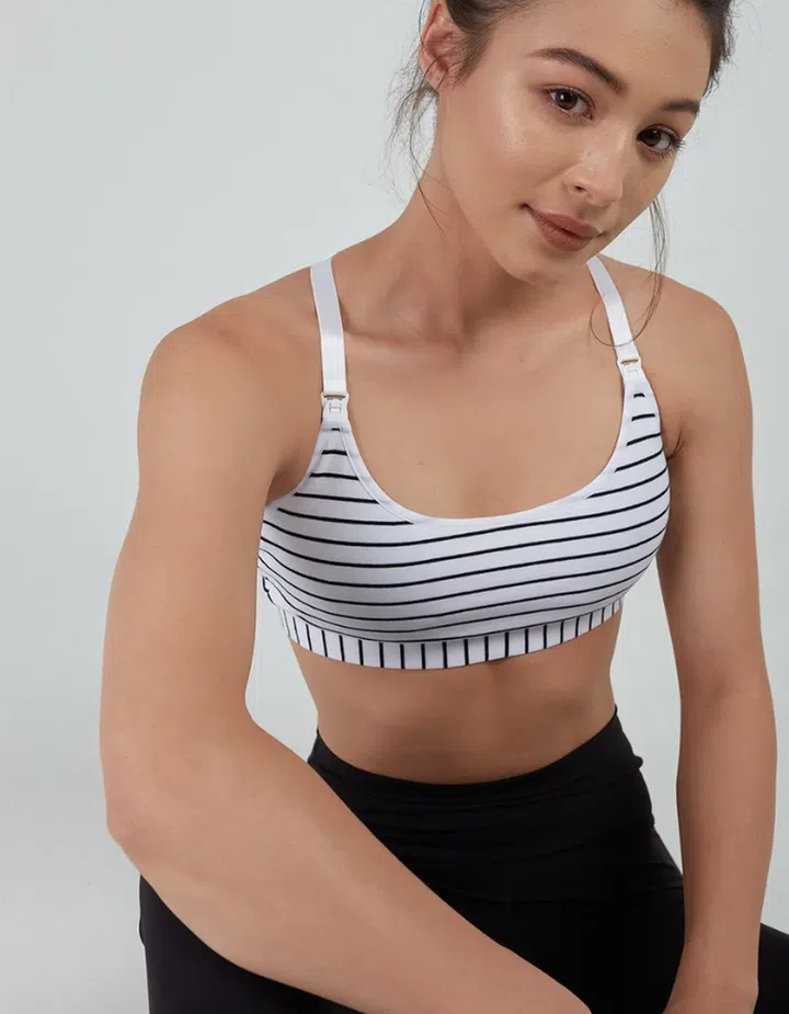 For the mums who want to continue leading an active lifestyle while nursing, a supportive bra that moves with you and retains all the ease of nursing bras is key. This striped design from Lovemère checks that box.