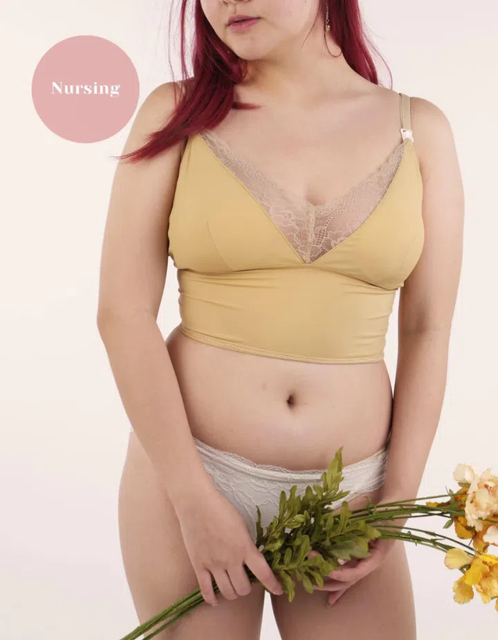 For added coverage, Our Bralette Club offers camisole-length nursing bras, featuring a full-cup coverage and a dainty lace trim that makes it both comfy and pretty to look at.