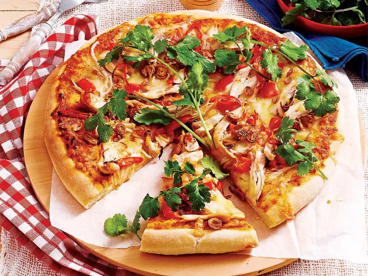 Is dad a pizza lover? Shred leftover barbeque chicken when you make this gorgeous satay chicken pizza for him!