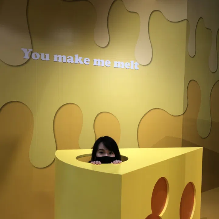 The attraction also houses two massive wedges of cheese with holes at the top so you can poke your head out of them. Cheesy, but cute!